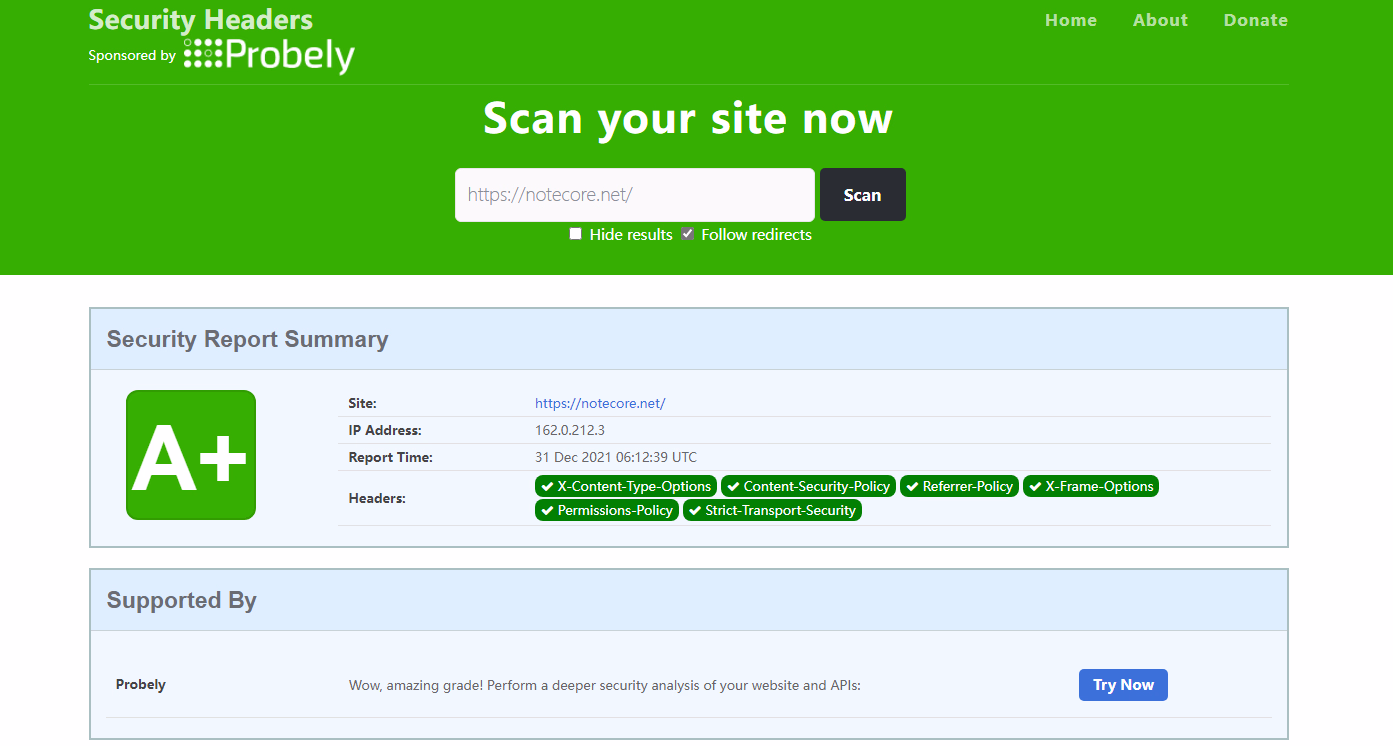 开启后,去 SecurityHeaders 测试一下,效果确实好。
